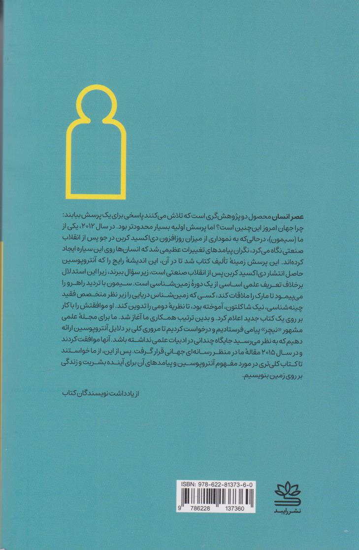 کتاب «عصر انسان: چگونه آنتروپوسین را ایجاد کردیم؟» نوشته سایمون ال. لوئیس و مارک ای. ماسلین، پژوهشی جامع دربارۀ آنتروپوسن است، اصطلاحی که برای توصیف عصر زمینشناسی کنونی استفاده میشود که در آن فعالیتهای انسانی منجر به تأثیرات متعددی بر روی محیط زیست گردیده است. نویسندگان کتاب را مقدمهای آغاز میکنند که مفهوم آنتروپوسن شرح کرده و توضیح می دهند که چگونه فعالیت های انسانی دوران معاصر زمین را به عصر جدیدی زمین شناسی سوق داده است. در این مقدمه آنها در مورد معیارهای تعریف دوره های زمین شناسی و شواهدی که از نظریۀ آنتروپوسن به عنوان یک دوره متمایز دفاع می کند، بحث می کنند. پس از این کتاب به برخی مباحث تاریخی می پردازد. این بخش تأثیرات زیست محیطی انسان ها را در طول زمان، از اوایل انقلاب کشاورزی تا انقلاب صنعتی و عصر مدرن، مورد بحث قرار می دهد. انقلابهای انرژی بحث بعدی کتاب است. نویسندگان به بررسی دو انقلاب مهم انرژی می پردازند که تاریخ بشر را به گونهای دیگر شکل داده اند: انقلاب کشاورزی و انقلاب صنعتی. این انقلاب ها به افزایش قابل توجه جمعیت انسانی و مصرف منابع منجر شده و تغییرات محیطی را در مقیاس جهانی ایجاد کرده است. آنها همچنین تأثیر جهانی شدن و شتاب سریع فعالیت های انسانی در قرن 20 و 21 را مورد بحث قرار می دهند. این دوره که به «شتاب بزرگ» معروف است، شاهد سطوح بیسابقهای از صنعتی شدن، شهرنشینی و تخریب محیط زیست بوده است. به طور کلی، نویسندگان در جهت دفاع از آنتروپوسین، تجزیه و تحلیل دقیقی از چگونگی تأثیر فعالیت های انسانی بر سیستم های مختلف زمین از جمله جو، اقیانوس ها و زیست کره ارائه می دهند و پیامدهای این تأثیرات، مانند تغییرات آب و هوایی، از دست دادن تنوع زیستی و آلودگیهای زیستمحیطی را مورد بحث قرار می دهند. جدا از ابعاد علمی و زمینشناسی، این کتاب خوانندگان را تشویق می کند تا در مورد نقش خودشان در شکلدهی به آینده سیاره فکر کنند و اقدامات لازم برای ایجاد جهانی پایدار را در نظر بگیرند.