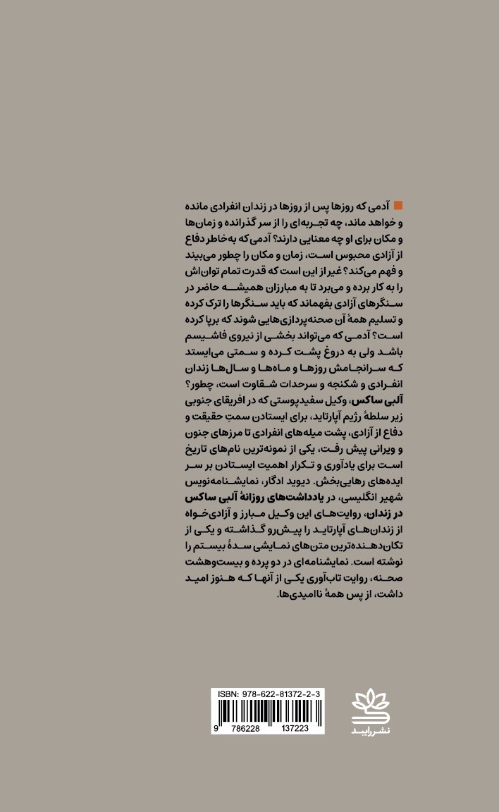 آلبی ساکس، وکیل سفیدپوستی که در آفریقای جنوبی زیر سلطهی رژیم آپارتاید برای ایستادن سمت حقیقت و دفاع از آزادی، پشت میلههای انفرادی تا مرزهای جنون و ویرانی پیش رفت، یکی از نمونهترین نامهای تاریخ است برای یادآوری و تکرار اهمیت ایستادن بر سر ایدههای رهاییبخش. دیوید ادگار، نمایشنامهنویس شهیر انگلیسی، در یادداشتهای روزانهی آلبی ساکس در زندان، روایتهای این وکیل مبارز و آزادیخواه از زندانهای آپارتاید را پیش رو گذاشته و یکی از تکاندهندهترین متنهای نمایشی سدهی بیستم را نوشته است؛ نمایشنامهای در دو پرده و بیست و هشت صحنه، روایت تابآوری یکی از آنها که هنوز امید داشت، از پس همهی ناامیدیها.